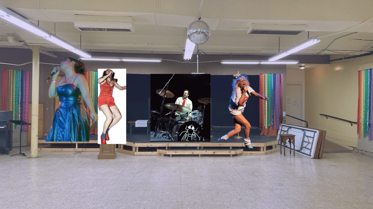A mockup of my music video for the perfect band: three vocalists (Girl K, Maddie Daviss, and Amy Taylor) and Danny Sien on drums.