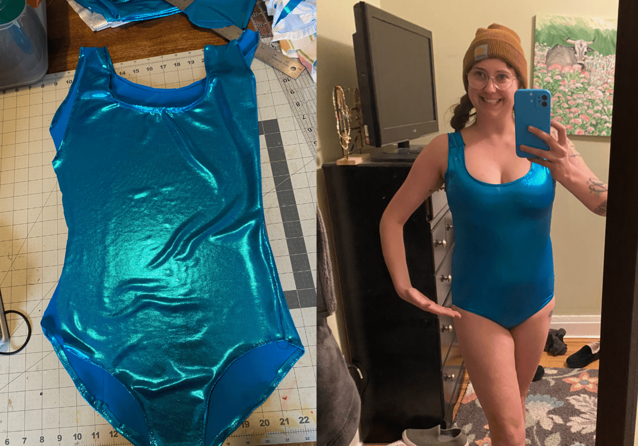 If you want to learn how to sew, don’t take a class. I can confidently say that the best way to learn is to watch a thousand YouTube videos and delusionally pick a project to just kinda slap together. Before I attempted a leotard I tried to make a fun fabric headband cover and some pajama shorts out of old sheets. Both were absolute busts. BUT every sewing project in the early days is going to help you get used to your machine and teach you something.